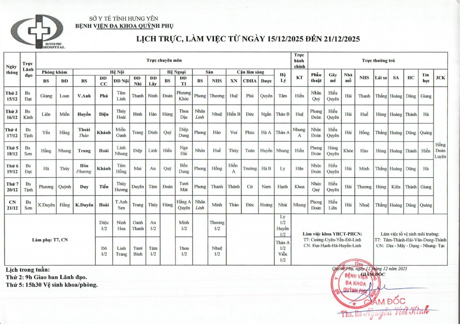 • LỊCH TRỰC, LÀM VIỆC TỪ NGÀY 11/8/2025 ĐẾN 17/8/2025