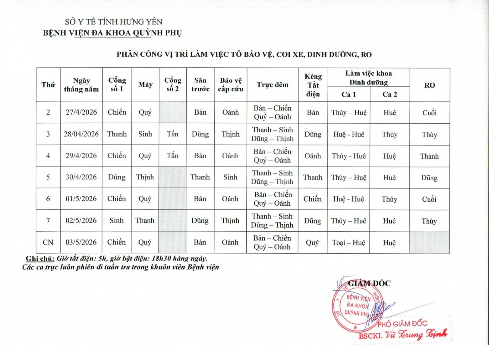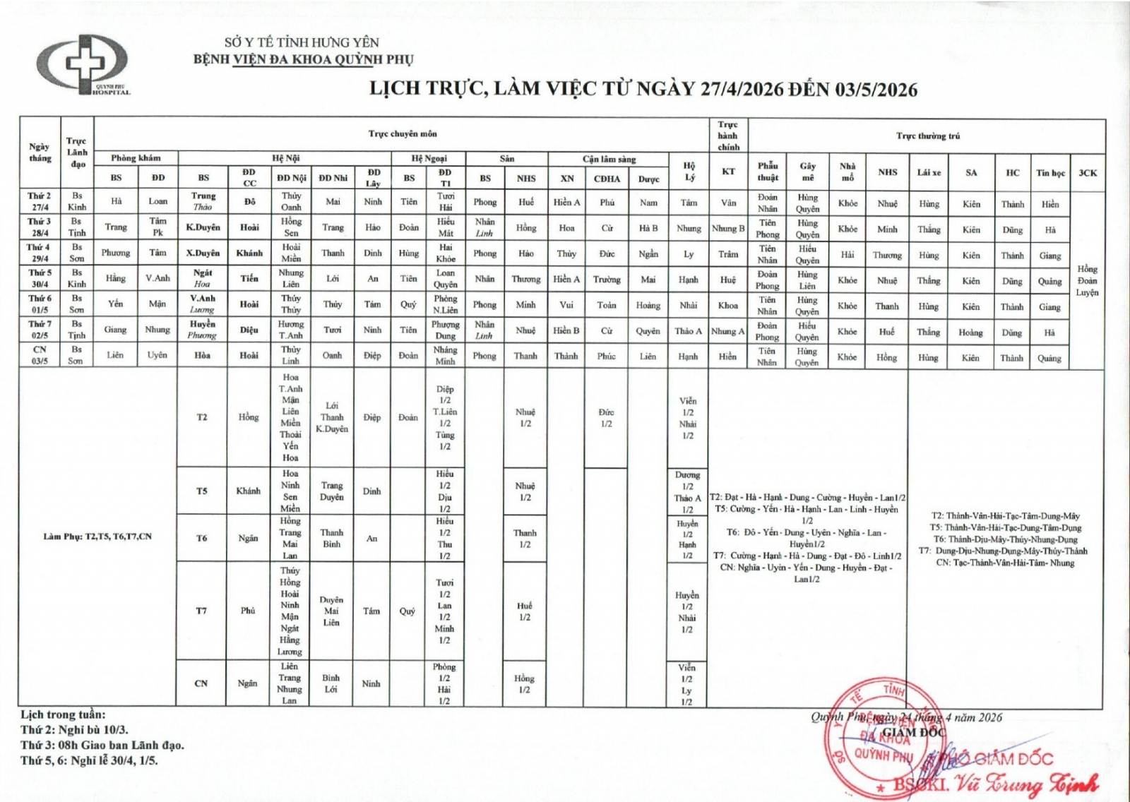 • LỊCH TRỰC, LÀM VIỆC TỪ NGÀY 20/04/2026 ĐẾN 26/04/2026