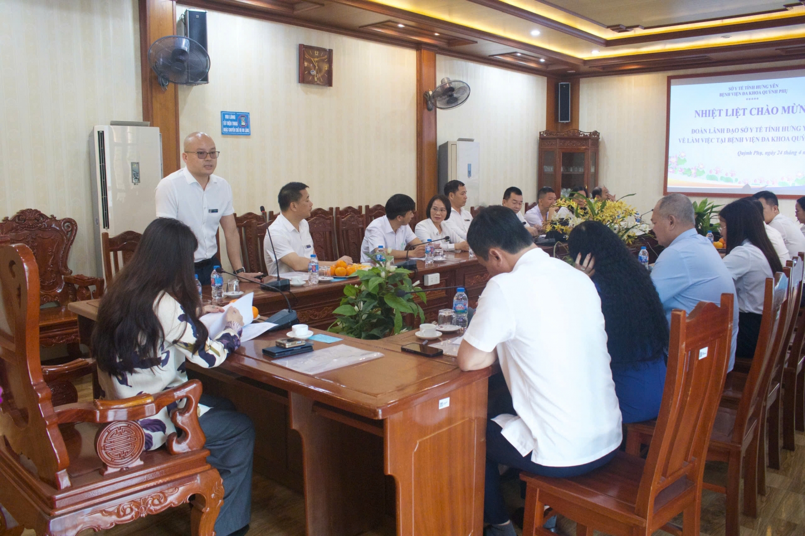 Ngày 24/04/2026, Đoàn công tác của Sở Y tế tỉnh Hưng Yên do Đ/c Nguyễn Thị Anh – Tỉnh uỷ viên, Giám đốc Sở Y tế làm Trưởng đoàn; Cùng đi có các Đ/c: Nguyễn Quang Lâm- Phó Giám đốc Sở Y tế tỉnh Hưng Yên; Đ/c Nguyễn Quang Huy - Phó Giám đốc Sở Y tế tỉnh Hưng Yên; Đ/c Lê Thị Thanh Phương - Phó Giám đốc Sở Y tế tỉnh Hưng Yên và các Đ/c Lãnh đạo phòng Sở Y tế đã có buổi thăm và làm việc tại Bệnh viện Đa khoa Quỳnh Phụ