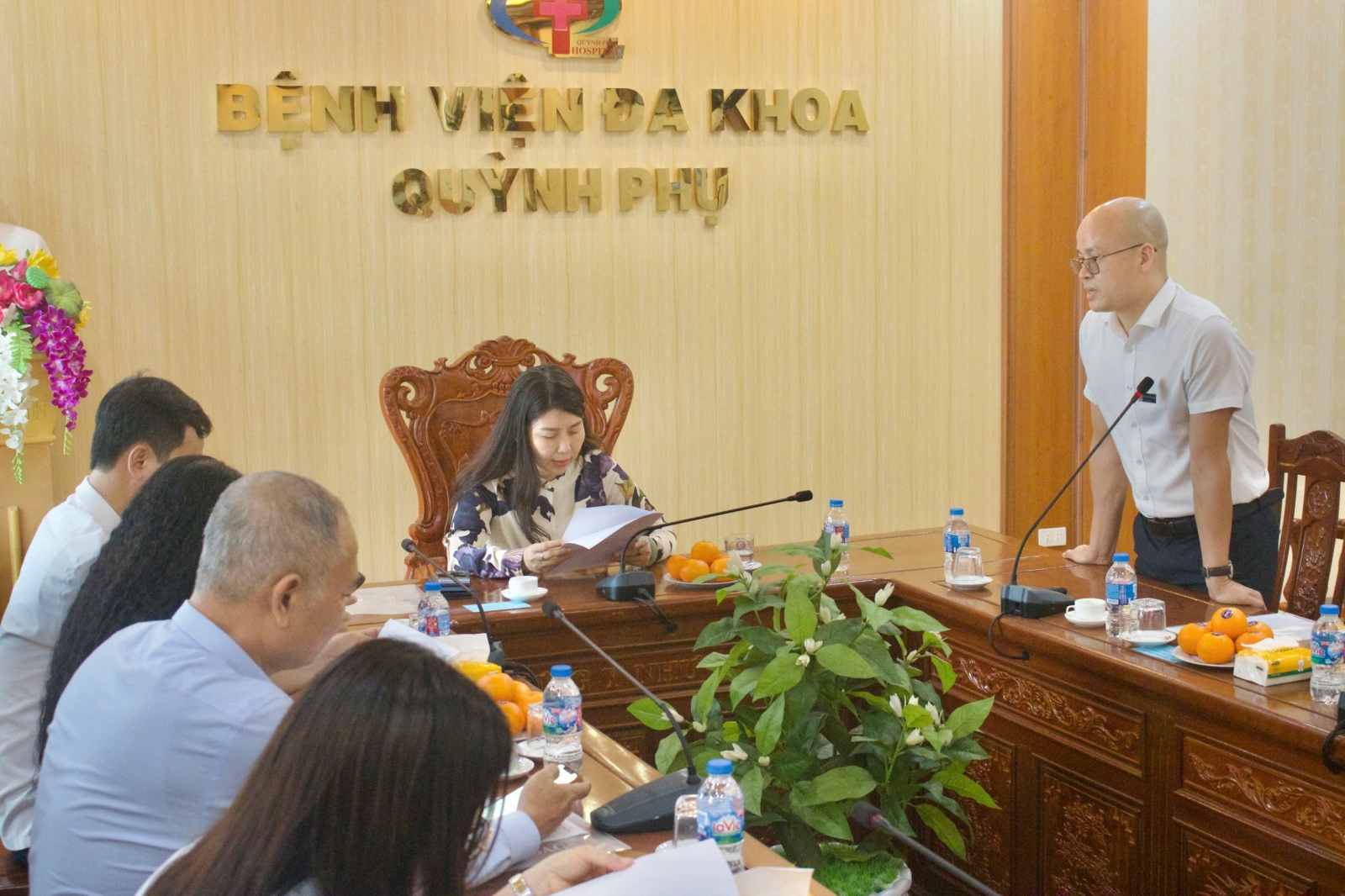 Tiếp và làm việc với đoàn, về phía Bệnh viện Đa khoa Quỳnh Phụ có Đ/c Nguyễn Viết Kình - Bí thư Đảng uỷ, Giám đốc Bv; Đ/c Vũ Trung Tịnh - Phó Bí thư Đảng uỷ, Phó Giám đốc Bv và các Đ/c lãnh đạo các Khoa, Phòng chức năng trong Bệnh viện.